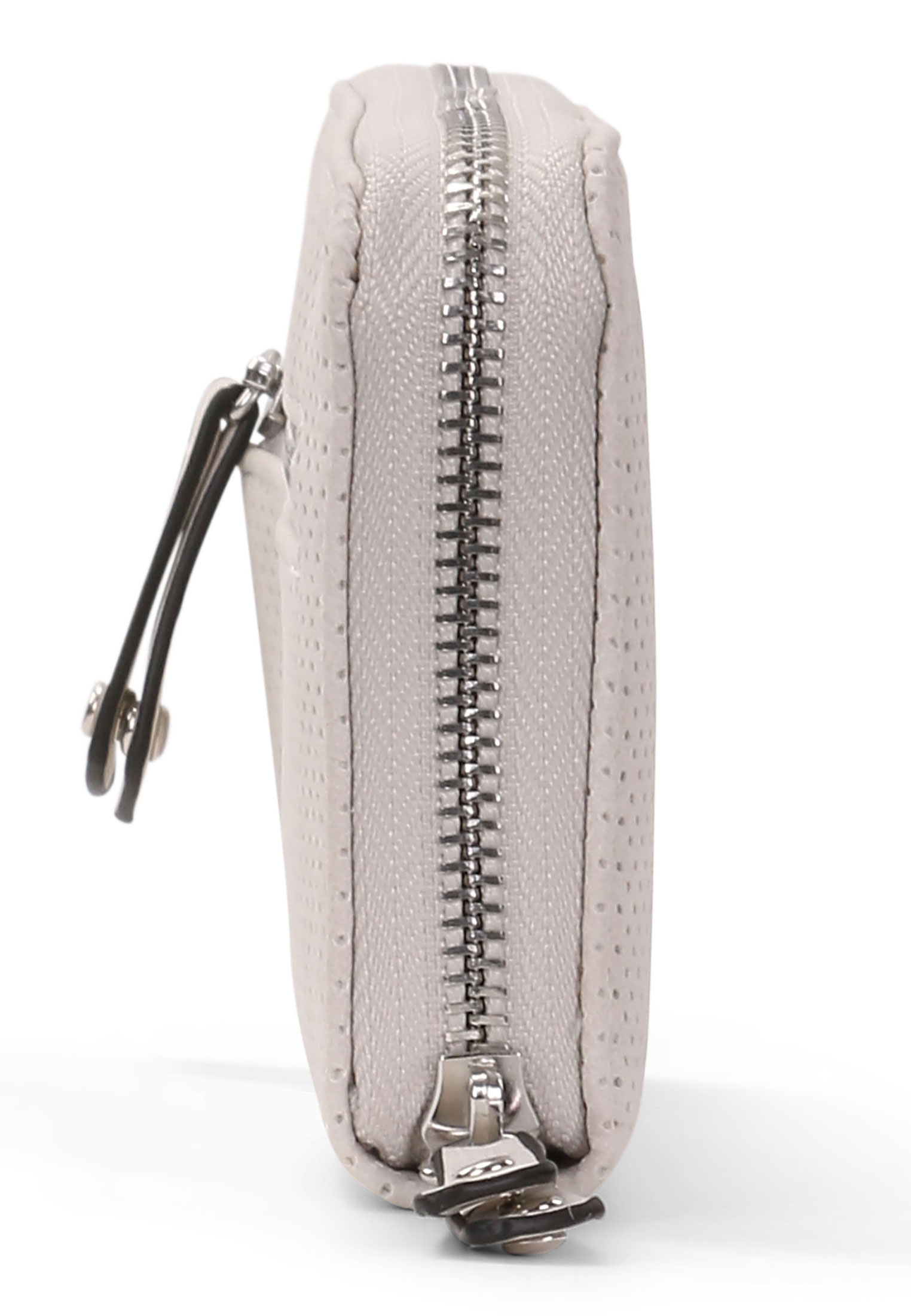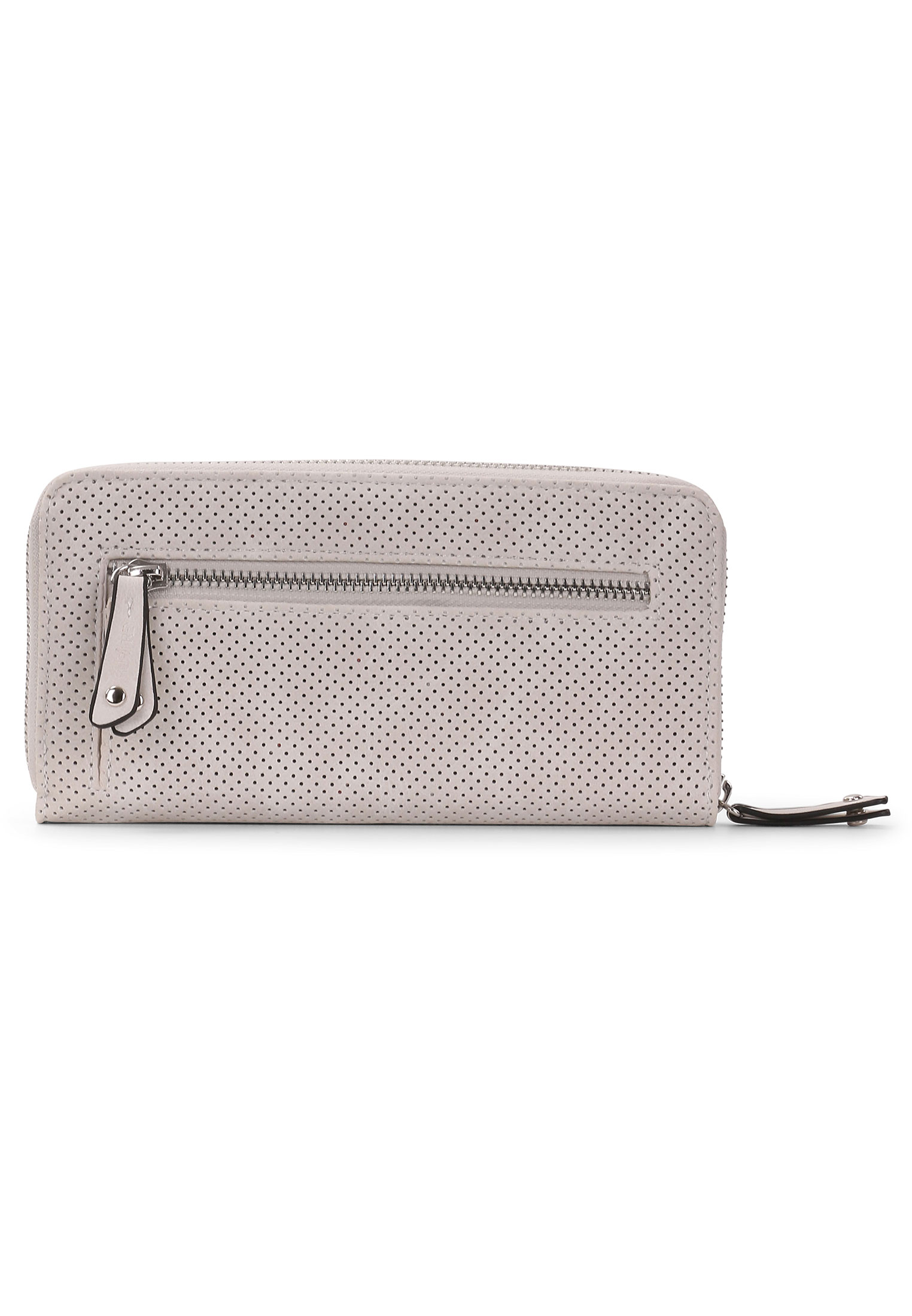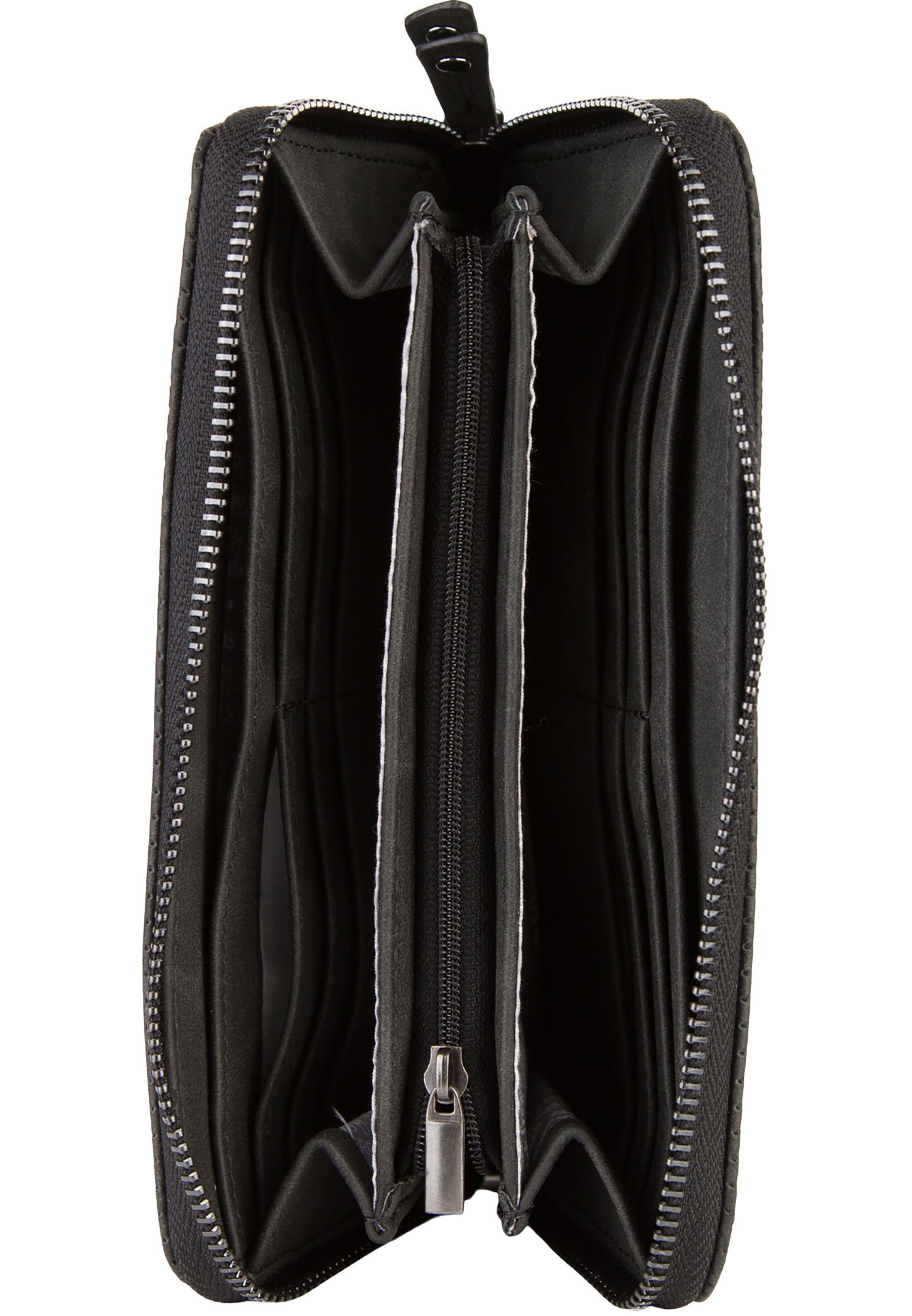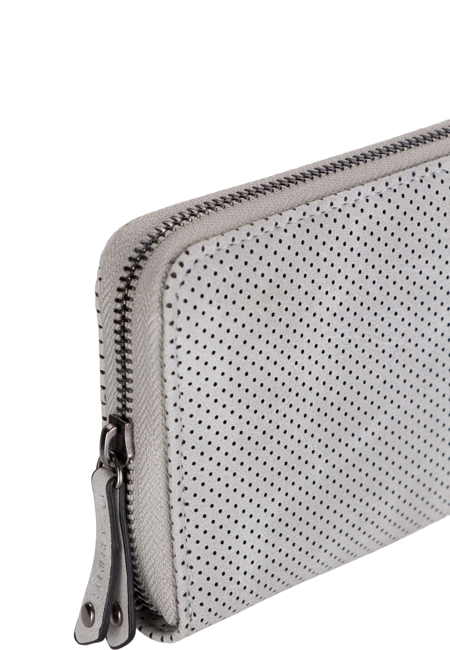 Jederzeit sympathisch und attraktiv unterwegs. Die Geldbörse Romy kommt im Uni-Design mit Reißverschluss-Münzfach und bietet genug Platz für Bargeld und Karten. Gefertigt aus Feinsynthetik ist das Modell, das sich mit einem Reißverschluss verschließen lässt. Durch das Material ist es schön leicht und angenehm im Griff. Mit ihrer Lasercut-Optik und dem Uni-Design ist die hochwertige Geldbörse ein echter Hingucker. SURI FREY - die Marke für Freygeister". SURI FREY kennt die Wünsche ihrer begeisterten Kundinnen genau und sie weiß, was sie verbindet - Offenheit, Lebensfreude und Freundschaften. Und genau das spiegeln die Produkte des angesagten Modelabels wider. Für alle, die es gerne weich mögen - Romy ist aus einem angenehm anschmiegsamen Material. Für das gewisse Extra sorgt die Applikation mit dem Emblem, die zum verspielten Blickfang wird. Das Portemonnaie hat Scheinfächer, ein Reißverschluss-Münzfach und 12 Kreditkartenfächer.