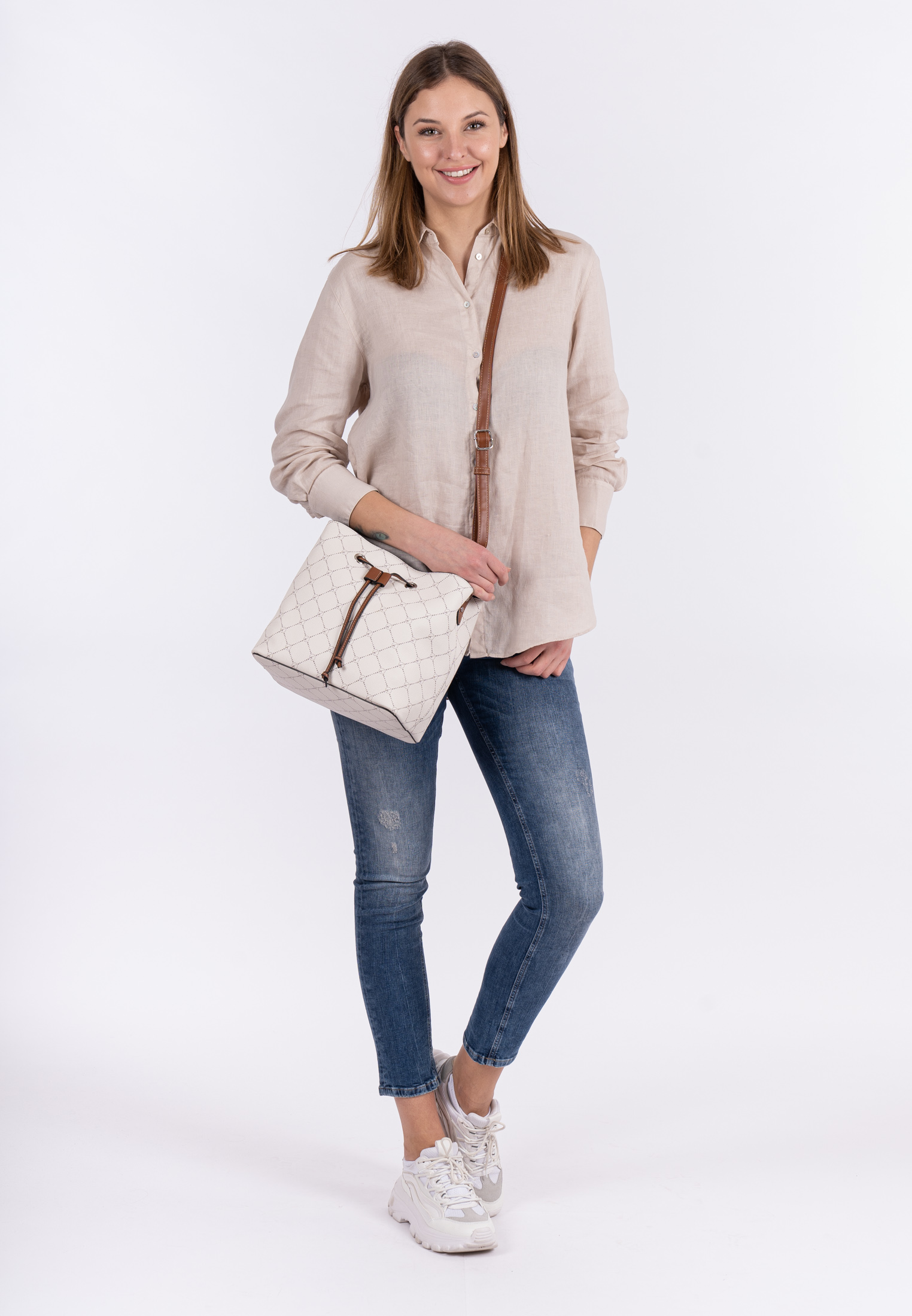Authentisch, selbstbewusst und brillant - so präsentieren sich Frauen im Alltag. Selbstverständlich am liebsten mit ihrer Lieblingstasche. Der Beutel Anastasia kommt in Kunstleder mit Kordelzugverschluss und sieht einfach toll aus. Ob für Büro, Schule oder in der Freizeit - mit dem Beutel Anastasia lässt sich jedes Abenteuer bestreiten. Das Modell besteht aus Kunstleder und lässt sich mit Kordelzugverschluss verschließen. Print-Design und Echtleder-Optik sind fein gearbeitet und verleihen dem Beutel einen edlen Look. Für jeden Lebensstil das passende Accessoire. Für alle Styles und alle Anlässe wird ein Outfit erst durch den passenden Begleiter vervollständigt - mit Tamaris können sich alle Frauen sehen lassen. Ein eher festes Material sorgt bei Anastasia dafür, dass wichtige Dinge keine Knicke bekommen. Für das gewisse Extra sorgt die Applikation mit dem Logo-Anhänger, die direkt ins Auge fällt. Mit einem praktischen Umhängeriemen und dem abnehmbaren Tragegriff wird der neue Lieblingsbegleiter ganz entspannt als Schultertasche getragen. Im hübschen Beutel ist Platz für alles - sogar für ein kleines Mitbringsel zur Einweihungsparty oder ein paar Pralinen für die Oma.