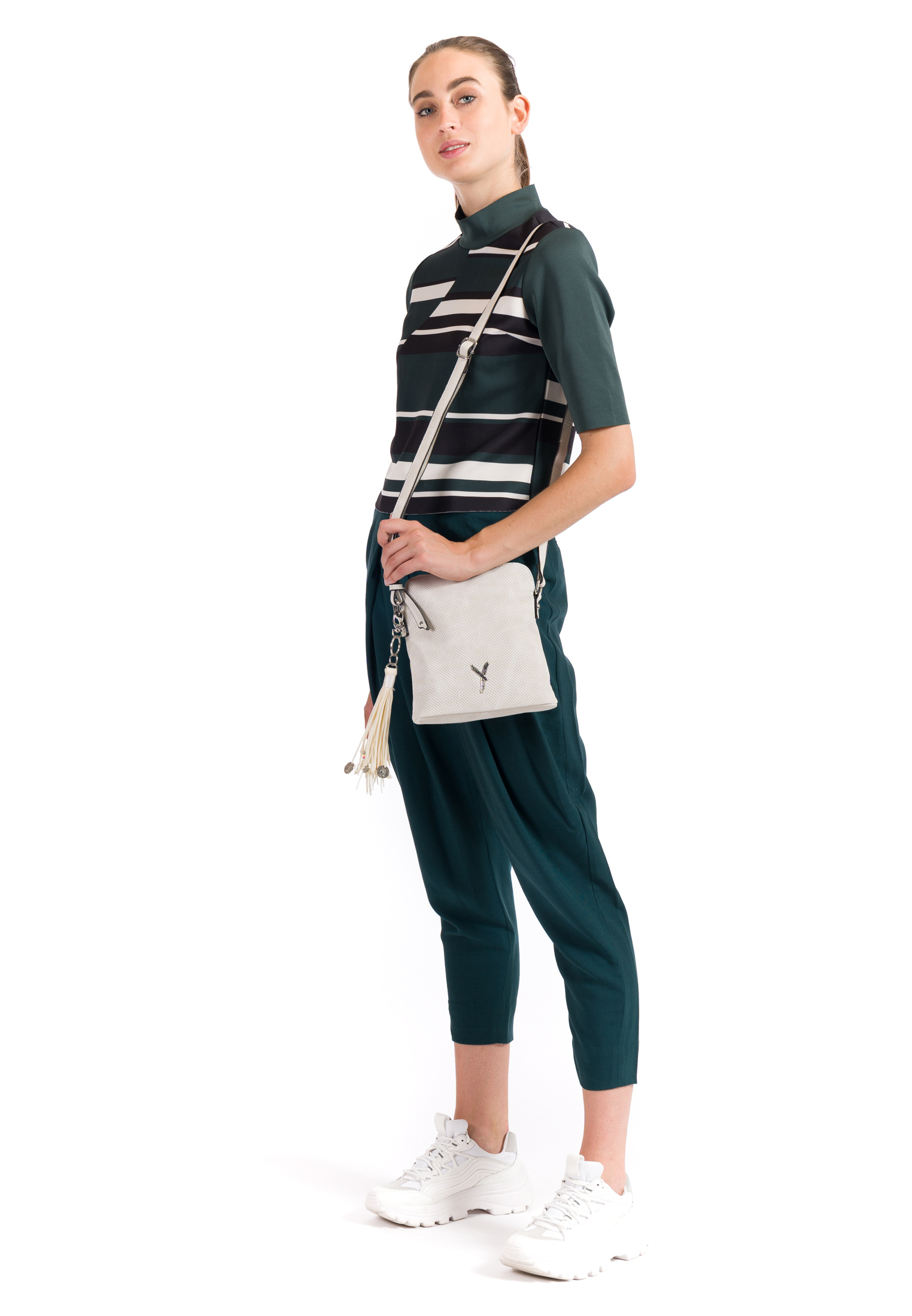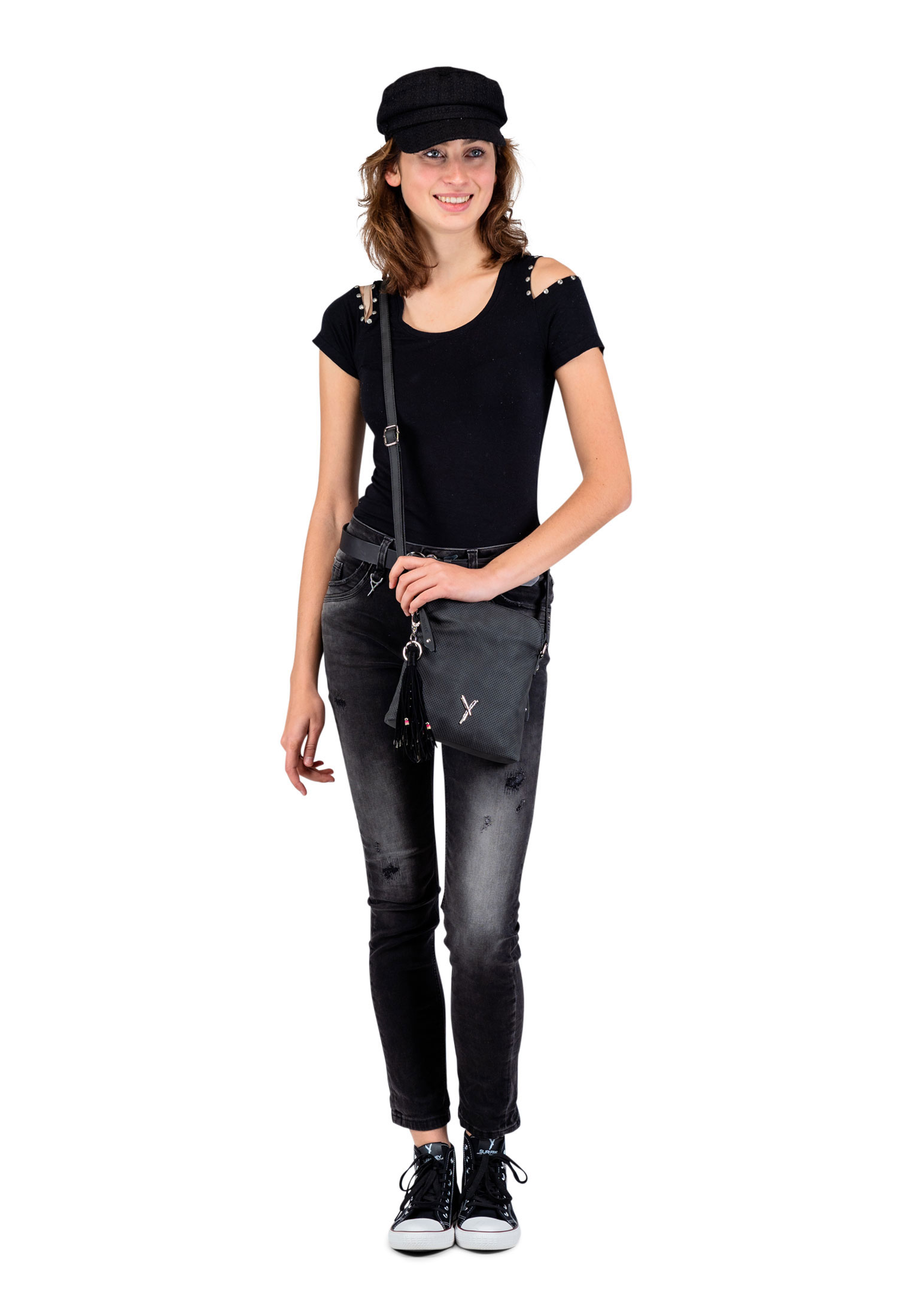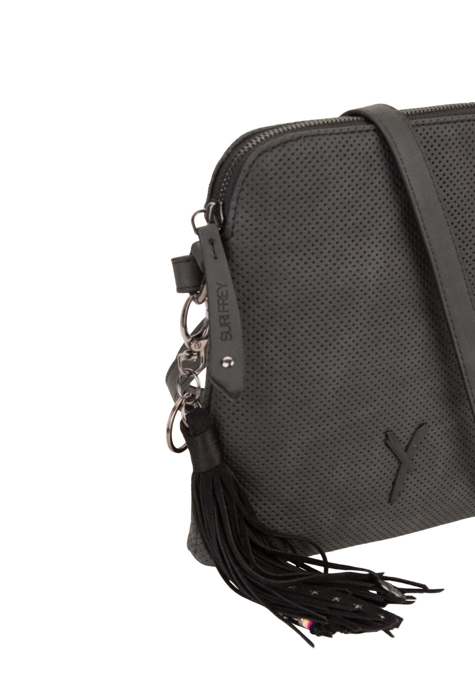 Eine Handtasche ist wie eine gute Freundin, sie lässt einen nie im Stich und steht zuverlässig zur Seite. Die Umhängetasche Romy kommt im Uni-Design mit Fransen und sieht einfach gut aus. Ein unverzichtbarer Begleiter im Alltag - die Umhängetasche Romy. Es ist so einfach, auch im größten Trubel gut auszusehen. Gefertigt aus Feinsynthetik ist das Modell, das sich mit einem Reißverschluss verschließen lässt. Durch das Material ist es schön leicht und angenehm im Griff. Ein optisches Highlight ist die Umhängetasche mit Lasercut-Optik und dem Uni-Design. Modebewusst und "frey" - SURI FREY. Die tollen Accessoires von SURI FREY stehen für Freiheit, Lebenslust und Offenheit - genau das, was Frauen mit Selbstbewusstsein ausstrahlen. Das Modell Romy ist von der Haptik eher weich und daher besonders angenehm zu tragen. Einen zusätzlichen Akzent setzen die hübschen Fransen. Mit einem praktischen Umhängeriemen wird der neue Lieblingsbegleiter lässig als Umhängetasche getragen. Die ideale Größe für alles, auf das man unterwegs nicht verzichten kann - hier passt sogar ein handliches Etui für Makeup, Lippenstift und Co. mit rein.